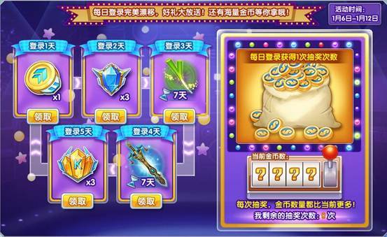 还可以每日参与摇金币活动哦!偷偷的告诉你,金币只会越摇越多哦!