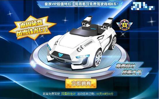 只要成为VIP,就可以免费获得7天的风雪铁龙GT哦!