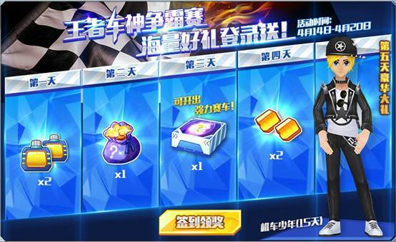 每日登录进行签到,累积签到一定天数,即可获得强力赛车、精美全套机车少年套装羞涩女仆套装!快来免费领福利吧!