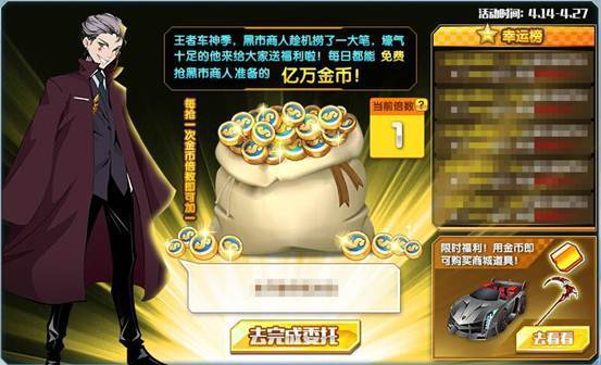 荷包满满的黑市商人,一改之前的吝啬,突然带着小山一样高的亿万金币出现在了各位赛车手面前,并扬言这些金币都要免费送给各位赛车手?这究竟,又是怎么回事呢?