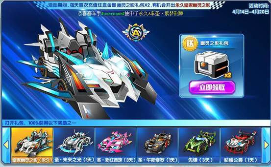 每日充值任意金额钻石,就可免费领取1个幽灵之影礼包!充值满100钻,还可以再领取一个幽灵之影礼包!