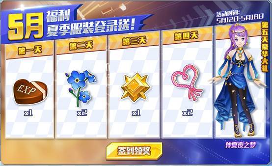每日登录进行签到,累积签到一定天数,即可获得夏日系列套装------清凉少年套装(男)夏夜之梦套装(女)哦!快来免费领福利吧!