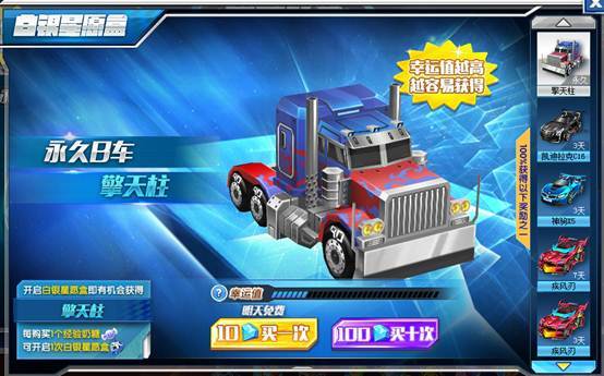 黄金星愿盒每天都可免费开启一次,每次开启都有机会获得其中的永久赛车奖励。之后开启需要花费25钻,购买一个经验巧克力。