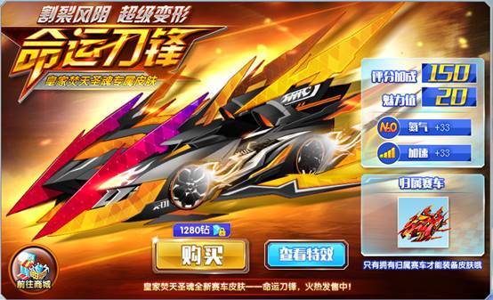 PS:必须要拥有永久皇家焚天圣魂的赛车手才能装备皮肤哦!