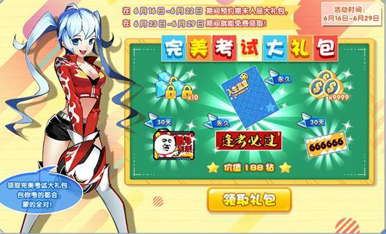 在6月23日-6月29日期间可以领取价值188钻豪华大礼包!