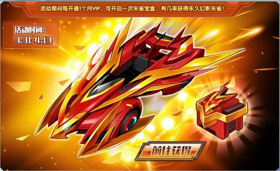 并且活动期间充值VIP满一个月还能免费获得朱雀宝箱,有几率马上获得永久幻影朱雀哦!快来看看吧!