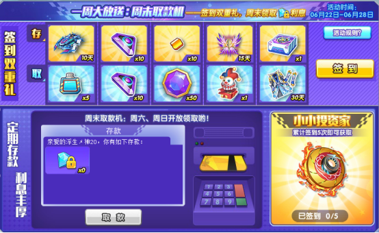 06月22日—06月28日期间,每天可以在活动页面签到一次,