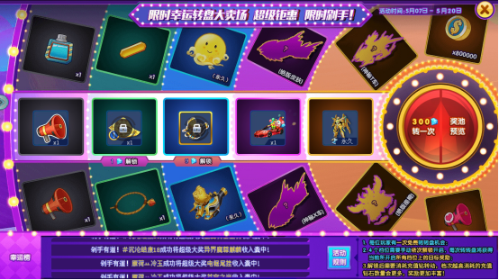 每位玩家有一次免费转动转盘的机会,四个档位需要玩家手动解锁开启,