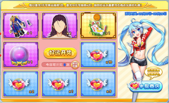 每日好运开奖回归,活动时间为5月7日至5月20日