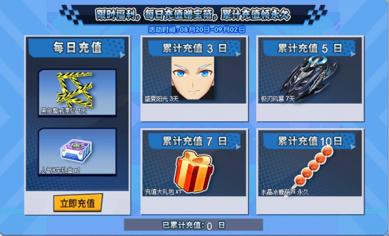 每日充值钻石即可获得抽奖礼盒及赛车装饰